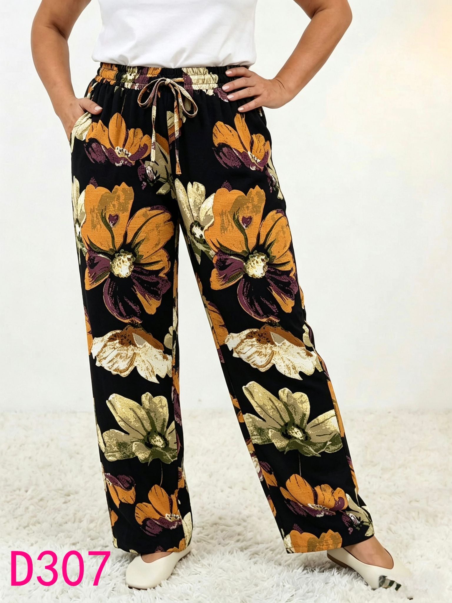 Széles szárú pamut laza nadrág D307